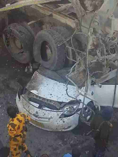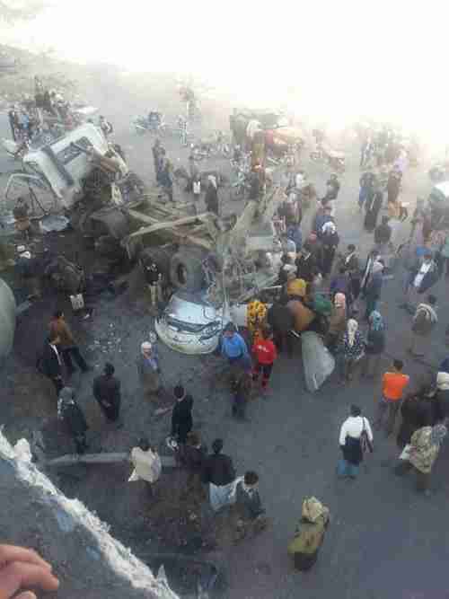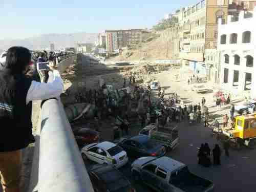 عاجل/ حادث مروري مروّع يخلّف ضحايا بعد سقوط شاحنة من فوق جسر مذبح في صنعاء على سيارة أجرة شاهد صور مروعه