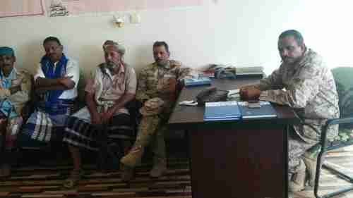 عقد صباح يوم الإثنين إجتماع موسع بقيادة العقيد الركن /علي سعيد مبارك العميسي قائد عمليات اللواء111 مشاة في المجمع الحكومي مقر قيادة اللواء 111 مشاة ومقر قيادة الحزام الأمني بمديرية احور وقد ضم الاجتماع كلاً من السلطة المحلية والعسكرية والأمنية والمشائخ والأعيان في المديرية حيث ناقش الإجتماع عدة قضايا ومشاكل التي تمر بها المديرية في ظل الضروف الحالية الحرجة من عمليات تهريب وتدفق الأفارقة قبالة سواحل احور كون مديرية احور كبرى مديريات محافظة أبين التي تتمتع بموقع جغرافي هام ويمر بها الخط الساحلي الدولي الذي يبلغ طوله 120 كيلو متر وهي محتاجة لتأمين مداخلها ومخارجها من أي أمر طارئ قد يحدث في ظل الضروف التي تمر بها البلاد من حروب وأزمات مختلفة. وقد تناول الإجتماع قضية قطع الطريق ليومه الثالث على التوالي من قبل مستجدي الحزام الأمني المشاركين في عملية التطهير التي شملت المنطقة الوسطى ومديرية المحفد الذين لم يتم استيعابهم إلى قوات الحزام الأمني أسوة ببقية زملاءهم من المديريات الأخرى في المحافظة حيث كان عدد الأفراد 200 جندي تم استبعادهم من قائمة قوات الحزام الأمني ولم يصرف لهم أي مرتب منذ عملية التطهير للحملة الأخيرة في أبين وقد أقر الاجتماع بتكليف بعض المشائخ والقيادات العسكرية والأمنية لمناقشة هذه المشكلة التي أصبحت تشكل عناء لمعتادي الخط الساحلي مع قيادة التحالف العربي وقيادة الحزام الأمني والتدخل السريع عبد اللطيف السيد وحل هذه المشكلة بأسرع وقت وقد حصلنا على بعض من القيادات العسكرية والأمنية و المشائخ: خرج الإجتماع بالنقاط التالية: 1_فتح الطريق العام باحور 2_حل مشكلة الأفراد الذين تم تسجيلهم في الحزام الأمني مع قائد الحزام الأمني بأحور بعد الإتفاق مع قيادة التحالف العربي على نقلهم إلى معسكر اللواء الخامس لغرض التدريب وعودتهم إلى مديرية بعد استكمال التدريب كون المذكورين ممن شاركوا في الحملة الأمنية في المناطق الوسطى ومديرية المحفد وعددهم 200فرد 3_يكلف الأخ صالح سعيد مبارك مندوبا لهم ونقلهم إلى اللواءالخامس وسوف يكون في استقبالهم الأخ محمد احمد صالح قائد الحزام الأمني بأحور وهناك سوف يتم صرف لهم مرتباتهم . عقيد ركن /علي سعيد مبارك العميسي قائد عمليات اللواء 111 مشاة مدير أمن مديرية احور رائد/عبدالرحيم عبدالله لبيض أحمد عوض لعرج (قائد عمليات الحزام الأمني بأحور) الشيخ سالم محمد السيد والشيخ عوض أبوبكر مسعادي عضو السلطة المحلية والشيخ ناصر محمد أحمد والشيخ علي ناصر عوض والشيخ محمد لعرج مدير الأمن السياسي باحور وعدد كبير من المشائخ والأعيان من أبناء المديرية الجدير بالذكر أنه تم فتح الطريق بعد منتصف ليلة امس الاثنين بوساطة عسكرية من قيادة عمليات اللواء 111 مشاة ليتم التواصل مع القيادة في أبين من أجل حل مشكلة هؤلاء الأفراد الذين لم يتم ضمهم واستيعابهم إلى قوات الحزام الأمني. وأيضا الجدير بالذكر تم فتح الخط الدولي بعد تدخل قيادة العمليات للواء 111مشاة والأجهزة الأمنية والعسكرية والمشائخ والأعيان بعد الساعة الواحدة صباحا منتصف ليلة امس الإثنين حيث عادت الحياة بعد فتح الخط وسط ترحيب كبير من قبل المسافرين .