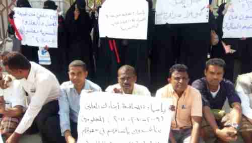 معلموا مكتب التربية والتعليم بأبين ينظمون وقفة إحتجاجية للمطالبة بتسوية مرتباتهم