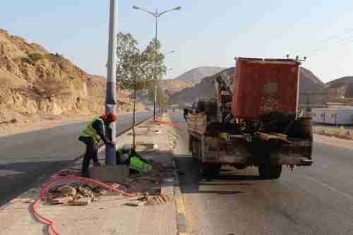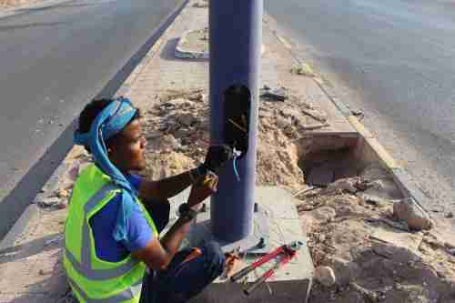 بدعم من السلطة المحلية البدء في مشروع إعادة تأهيل إنارة شارع المعاوص - الغويزي بالمكلا