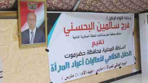 محافظ حضرموت يرعى حفلاً لتكريم أمهات الشهداء والمبرزات ويؤكد مواصلة دعم المرأة ورعايتها