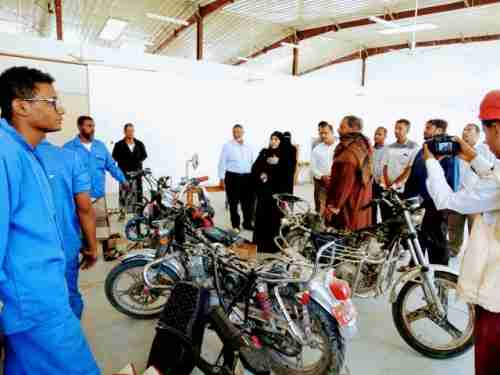 دشنت الأستاذة/ليلى علي الشعيبي مدير عام مكتب وزارة التعليم الفني والتدريب المهني بساحل حضرموت بحضور الأستاذ/ أحمد سعيد غانم رئيس مؤسسة صنائع المعروف للتمنية الإنسانية والمهندس/ عدنان الكلدي مدير عام التدريب والتأهيل بوزارة التعليم الفني والتدريب المهني والأستاذ/ قيس الحوري مدير المعهد المهني الصناعي بجول مسحه والأستاذ أحمد باشماخ ممثل مؤسسة صله للتنمية والأستاذ/حسن باراس مدير العلاقات بمؤسسة صنائع المعروف للتمنية حضرموت اليوم دورة صيانة الدراجات النارية بالمعهد المهني الصناعي بجول مسحه ضمن برنامج مهنتي الثاني الممول من مؤسسة صلة للتنمية والمنفذ من مؤسسة صنائع المعروف الإنسانية وبإشراف مباشر من مكتب وزارة التعليم الفني والتدريب المهني بحضرموت لتمكين الشباب من إمتلاك المهنة التى تخدم سوق العمل.