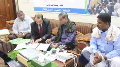 التوقيع في المكلا على اتفاقية تعشيب ملعب ستاد سيئون الاولمبي بتمويل من السلطة المحلية بالمحافظة شاهدالفيديوصور