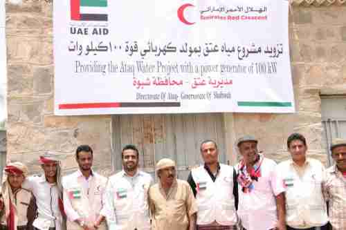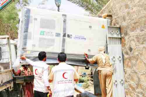 الهلال الاحمر الاماراتي يدعم مشروع مياه عتق في شبوة بمولد كهربائي قدرته 100 كيلو وات