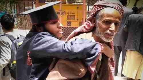 صورة مؤثرة .. فرحة يمني بتخرج ابنه من ذوي الاحتياجات