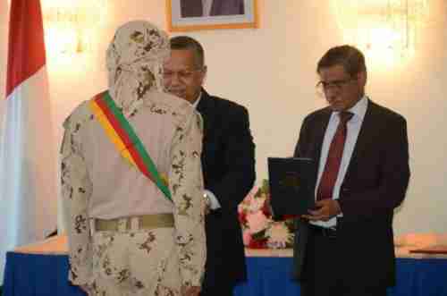 الرئيس هادي يمنح نقيب في القوات الإماراتية وسام الشجاعة شاهدالصور
