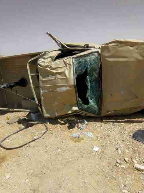 وفاة جندي واصابة ستة آخرين في انقلاب طقم عسكري بوادي حضرموت شاهدالصور