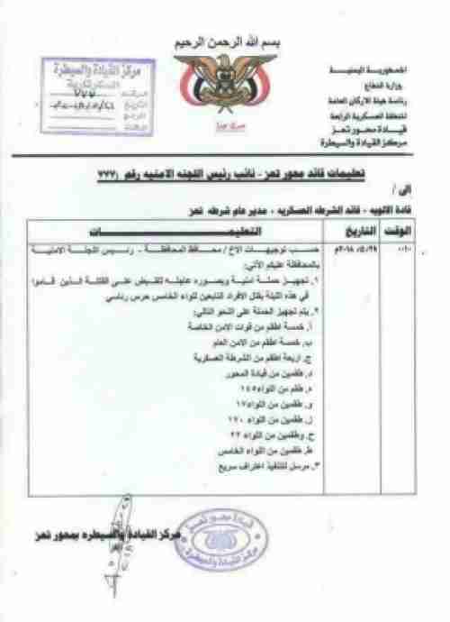 قائد محور تعز يتمرد ويرفض قرار المحافظ بشأن اللجنة الأمنية .شاهد. وثيقة