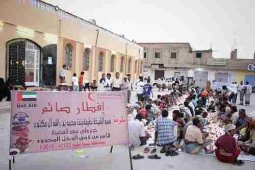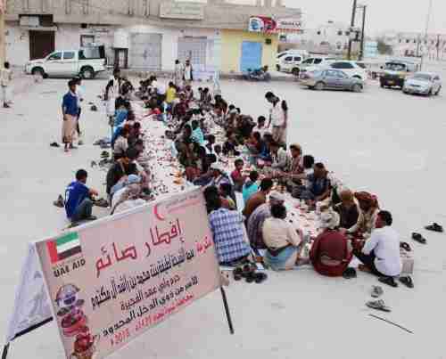 مصور"الهلال الأحمر الإماراتي" يقيم إفطاراً جماعياً بمدينة عتق عاصمة محافظة شبوة.