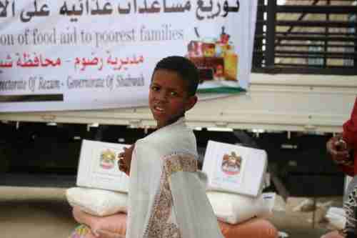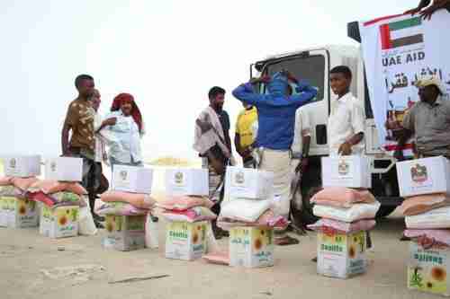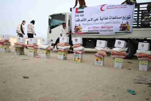 الهلال الأحمر الإماراتي " يوزع مساعدات إغاثية عاجلة على أهالي رضوم اليمنية.