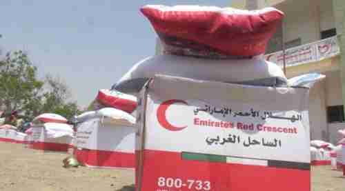 الهلال الأحمر الإماراتي يسير قافلة مساعدات غذائية لمنطقة الجاح التابعة لمديرية بيت الفقيه في الحديدة