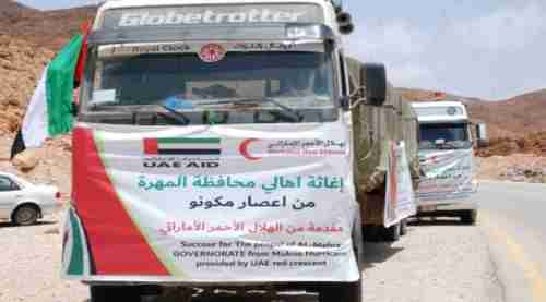 سيرت هيئة الهلال الأحمر الإماراتي، قافلة مساعدات إغاثية عاجلة إلى محافظة المهرة، تتضمن سلالاً غذائية، ضمن الجهود الإنسانية لدولة الإمارات لإغاثة المتضررين والأسر المحتاجة من أبناء المهرة عقب تعرض محافظتهم إلى إعصار مكونو.