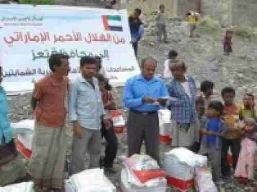 الهلال الأحمر الإماراتي يوزع سلالاً غذائية في مديرية المظفر بمحافظة تعز