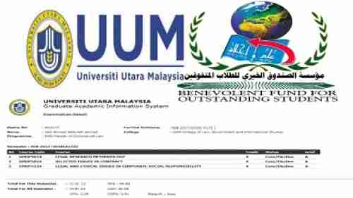 حققت الطالبة سالي أحمد عبدالله العاقل المبعوثة من قبل مؤسسة الصندوق الخيري للطلاب المتفوقين إلى جامعة (اوتارا) الماليزية، الماجستير بكلية القانون المركز الأول على دفعتها.