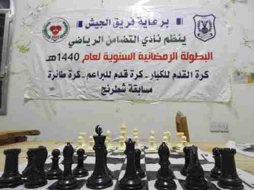 إنطلقت مساء الثلاثاء بصالة نادي التضامن الرياضي عتق البطولة الفردية المفتوحة للشطرنج للفرق الشعبية التابعة للنادي والتي تاتي ضمن النشاط الرياضي الرمضاني السنوي الذي يحييه النادي ، برعاية فريق الجيش الرياضي الراعي الرسمي لنشاطات النادي هذا العام .