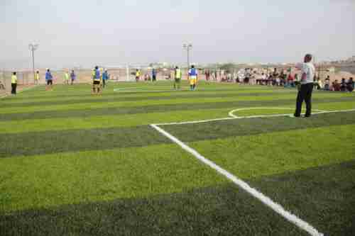هذة الصور ليست في منطقة خليجية وانما هي صورة لمشروع رياضي استثماري من قبل الكابتن / صادق ذيبان لتشجيع الجانب الكروي وقد تم افتتاح لاول مرة في محافظة شبوة مدينة عتق ملعب معشب صناعي امس الاحد 8/9/2019 ولاقت رواجا رياضيا كبيرا من قبل محبي وممارسي رياضة كرة القدم رأيت اليوم بعد الافتتاح فرق مختلفة ملئت الملعب رأيت شبابا يعشقون الحياة ويعيشون يومهم بكل تفاصيله وجزئياته رغم ظروف الحرب و الوضع الاقتصادي والمعيشي الصعب الذي لم يرحم احدا ولكن هم كذلك وسيبقون كذلك بإذن الله.