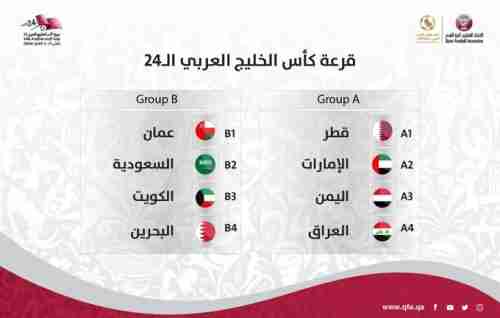 وضعت قرعة بطولة كأس الخليج "خليجي 24"، التي أجريت الخميس، منتخب الإمارات في المجموعة الأولى، مع كل من اليمن والعراق وقطر البلد المضيف. في المقابل، أسفرت القرعة، التي أجريت في العاصمة القطرية الدوحة، عن وقوع منتخبالسعودية في المجموعة الثانية مع عمان والكويت والبحرين. وطبقا للقرعة فقد ضمت كل مجموعة 3 منتخبات سبق لها الفوز باللقب فيما لم يتوج الرابع من قبل، حيث لم يسبق للبحرين أو اليمن الفوز باللقب الخليجي. وقبل يومين، أعلنت اتحادات السعودية والإماراتوالبحرين لكرة القدم مشاركتها في "خليجي 24" المقامة في قطر. وكان من المقرر أن تقام البطولة بنظام المجموعة الواحدة، لكنها ستلعب بمجموعتين الآن بعد مشاركة جميع الفرق. وحدد اتحاد كأس الخليج العربي موعد البطولة التي تحظى بشعبية واسعة في منطقة الخليج، بين 24 نوفمبر والسادس من ديسمبر، بدلا من الموعد المعلن سابقا بين 27 نوفمبر والتاسع من ديسمبر.