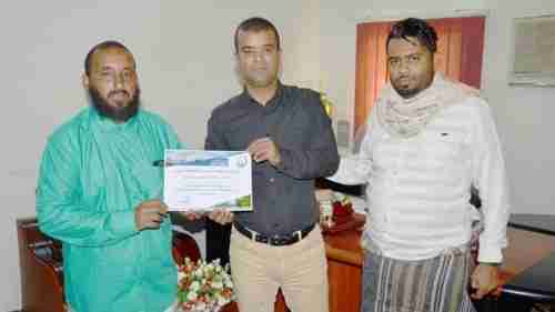 مدير صندوق نظافة ساحل حضرموت يكرّم عامل التشجير خالد بابعير نظير تفانيه وتميزه في عمله