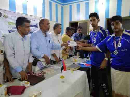 كما جرى تكريم الفائزين بالبطولة المدرسية الناشىء محمد عوض بن جميل عن فئة الثانوية والموحدة حسين أحمد الجفري.