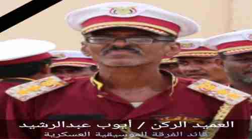 توفي اليوم قيادي بارز في المؤسسة العسكرية الجنوبي بالعاصمة عدن. وقالت مصادر محلية أن العميد الركن أيوب عبدالرشيد قائد الفرقة الموسيقية العسكرية التابعة لدائرة التوجيه المعنوي للقوات المسلحة والمقاومة توفي صباح اليوم الاربعاء بالعاصمة عدن إثر ذبحة صدرية المت به. حيث ووري جثمانه الطاهر الثرى ظهر اليوم في العاصمة عدن بموكب جنائزي كبير حضره العميد الركن علي منصور الوليدي مدير دائرة التوجيه المعنوي للقوات المسلحة والمقاومة الجنوبية وكافة زملاءه من منتسبي الفرقة الموسيقية العسكرية ودائرة التوجيه المعنوي والقوات المسلحة وجماهير غفيرة من اصدقاء واقارب وزملاء الفقيد رحمه الله. وخاض العميد ركن أيوب عبدالرشيد حياة كفاحية وعملية وموسيقية حافلة بالعطاء والابداع في خدمة الوطن والمؤسسة الدفاعية والأمنية الجنوبية ، قدم خلالها خير ابداعاته الموسيقية وخبراته العسكرية القيادية والادارية والميدانية في تطوير اداء وقدرات الموسيقى العسكرية واعادة بناء الفرقة الموسيقية العسكرية الجنوبية الذي اسندت اليه مهمة قيادتها منذ اعادة تاسيسها عقب حرب تحرير عدن من المليشيات الانقلابية الحوثية المتمردة. وعمل على اعادة بناءها من الصفر وفي اعقد الظروف الاستثنائية التي شهدها الجنوب وبابسط الامكانيات المحدودة والذي جعل منها بحكمته وحنكتة القيادية وخبراته المهنية التراكمية الطويلة أن تحتل دورها الريادي ومكانتها المرموقة في رفع الروح المعنوية لمنتسبي القوات المسلحة والامن ومشاركتها في مقدمة الفعاليات الوطنية الرسمية والجماهيرية ونالت احترام وتقدير كبيرين على المستويين العسكري والمدني.