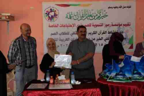 اختتم صباح اليوم بمديرية المنصورة محافظة عدن تدريب " نشاط القران الكريم الجزء الثاني للطلاب الصم " التي نظمتها مؤسسة رموز التنموية للصم وذوي الاحتياجات الخاصة وبدعم من فاعلي الخير دولة الإمارات العربية المتحدة خلال الفترة التي استمرت 15-25 أغسطس 2020م . وفي اختتام التدريب التي حضرها " الأستاذ محمد قايد الشاعري " المدير التنفيذي لصندوق رعاية تأهيل المعاقين، المركز الرئيسي / عدن " القى كلمة معبرا عن سعادته بالأنشطة التي تقيم في مؤسسة رموز من رفع معنويات فئة الصم والبكم وذوي الاحتياجات الخاصة وذلك لتعزيز مشاركتهم في الحياة الاجتماعية . وأكد " الشاعري" باهتمام صندوق رعاية المعاقين لفئة الصم والبكم التي يولي لهم اهتماما في تذليل الصعاب و استعدادهم بتوفير الإمكانيات اللازمة وإقامة أي أنشطة أو فعاليات قادمة في أي مجال من مجالات ذوي الاحتياجات الخاصة ..منوها بالقول بان هذا العام تم وضع خطة جديدة لتحسين أوضاع المعاقين في جميع المجالات . من جانبها تحدثت " إيمان عمر هاشم": المدير التنفيذي لمؤسسة رموز للصم والبكم موضحة بان يهدف هذا النشاط تدريب (20) طالب وطالبة من ذوي الاحتياجات الخاصة من الصم والبكم بطريقة تعليمهم سور من القران الكريم بلغة الإشارة .. مشيرة بان القائمين على التدريب هم معلمين من الصم والبكم في تحفيظ الأطفال القران الكريم بلغة الإشارة حتى تتيسر لهم بطريقة الاشارة من خلال الاتصال والتواصل .. وأضافت " إيمان " بان النشاط التي تنظمه مؤسسة رموز هو إدماج شريحة الفئة الضعيفة مع المجتمع وخاصة إن لديهم إمكانيات في الكتابة عالية مما يجب على المجتمع إن لا يقف عائق وان لا ينظر إليهم نظرة ضعيفة . وأشادت بدور الصندوق بدعمه المعنوي والمادي ...مثمنة جهود من فاعلين الخير لدعم الأنشطة في المركز . واختتمت " برسالة إلى المجتمع إن لا ينظر إلى فئة الصم والبكم وذوي الاحتياجات الخاصة بنظرة الشفقة ، فهم لهم الحق في التعليم وتوفير الحياة الكريمة وسبل العيش .. مناشدة المنظمات الدولية والاغاثية ومنظمات المجتمع المدني للنزول إلى مراكز ذوي الاحتياجات الخاصة لتلمس احتياجاتهم وأوضاعهم وخاصة من زيادة نسبة الإعاقة خلال فترة الحرب وما خلفتها من اثأر جسمية . وفي الختام تم توزيع شهادات تقديرية للمشاركين. حضر كلا من أولياء الأمور الطلاب والإعلاميين والصحفيات .