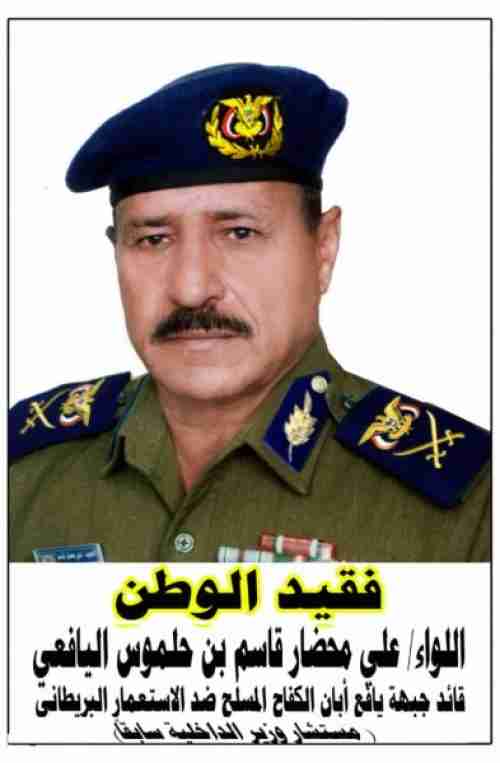 يقام صباح يوم غدأ الأحد حفل تابين فقيد الوطن الكبير المناضل اللواء علي محضار قاسم بن حلموس