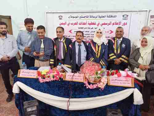 الماجستير بإمتياز للباحثة : "هدى خالد أحمد ناصر" على رسالتها " دور الإعلام الرسمي في تغطية أحداث الحرب في اليمن ".