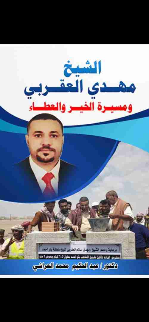 " صدر عن مركز ومطابع الأديب في عدن كتاب بعنوان" الشيخ مهدي العقربي ومسيرة الخير والعطاء" للدكتور عبد الحكيم العراشي، وقد جاء هذا الكتاب ليبرز الشيخ العقربي كشخصية مهتمة بالعمل الخيري، وواجهة قبلية لها ثقلها الاجتماعي، وأثبتت تميزها في مجال الإصلاح الاجتماعي بما عُرف عنها من رجاحة العقل، وبُعد النظر، وصواب الرأي، وحكمة القول. وقد وثق الدكتور العراشي بين دفتي هذا الكتاب الأعمال الخيرية والإنسانية لهذه الشخصية كنوع من الشكر والتقدير لخدمة المجتمع، وكنوع من التحفيز لرجال الأعمال للسير في هذه الطريق، وهذا الاتجاه لقي قبول لدى كثير من الوجهاء والشخصيات الاجتماعية أمثال الشيخ علي محمد السفياني، والأستاذ طه ماطر رئيس اللجنة الأهلية لمنطقة بئر أحمد ، والشخصية الاجتماعية مختار علي حيدر الذي رأوا بأن هذا العمل بمثابة تقدير للجهود التي يبذلها الشيخ مهدي العقربي، وخطوة ممتازة للفت الأنظار نحو العمل الخير وعملية الاصلاح الاجتماعي. كما هدف العراشي من هذا الكتاب إبراز أعمال الشيخ مهدي العقربي الخيرية وبيان أهميتها، وتوضيح ما قدمه من أعمال خيرية وإنسانية كان لها الأثر الكبير في التنفيس على الكثير من شرائح المجتمع، كما سيكون ذلك بمثابته تاريخ يؤرخ لفترة معينة من فترات تاريخ مجتمعنا؛ وهي فترة تُعدُّ من أسواء فترات التاريخ، نتيجة لتكالب المحن على المجتمع سواءً محن الصراعات السياسية أو محن الأمراض والأوبئة من حميات وجائحة كرونا، وكذلك محن كوارث السيول التي تعرضت لها عدن، لذا فأن ما قدمه رجل الخير الشيخ مهدي العقربي يقع ضمن إطار الحدث التاريخي لتلك الفترة التاريخية. لذلك فأن هذا الكتاب وقف على للأعمال الخيرية والإنسانية للشيخ مهدي العقربي، من خلال تقديمه معونات ومساعدات للمحتاجين، ودعم ورعاية للشباب والمبدعين والموهوبين، وتنظيمه للمسابقات الثقافية، ودعمه للفعاليات الرياضية، وتقديم يد العون للجمعيات الطلابية المهتمة بمساعدة الطلاب، والإسهام في تقديم الدعم للأهالي في العديد من مناطق عدن والمناطق المجاورة لها، من خلال توفير بعض احتياجاتهم والتخفيف من معاناتهم، هذا بالإضافة إلى تبنيه تنفيذ بعض المشاريع الحيوية التي تلامس حياة المواطنين من طرقات وكهرباء ومياه وإعادة تأهيل المدارس والمجمعات الصحية وشبكات الصرف الصحي، وتقديم أجهزة ومستلزمات طبية للمجمعات الصحية، وغيرها من الأعمال الخيرية التي سيجدها القارئ طي صفحات هذا الكتاب.