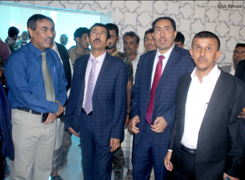 وعقب الافتتاح طاف الوزير و المحافظ ومرافقيه في أرجاء الصالة الرياضية وتفقدوا سير الانجاز ومدى جاهزيتها ، وكما تفقدا بيت الشباب والمكتب
