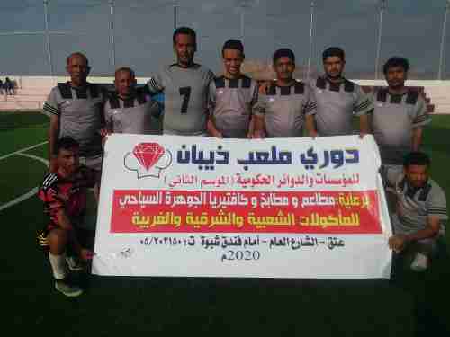 .برعاية كريمة من مطعم وكفتيريا الجوهرة السياحي لصاحبة الشيخ صالح حليس . التقى الكهرباء والبنوك في لقاء الفوز فيه او التعادل للبنوك يتوجه باللقب تقدم البنوك بالهدف الاول عن طريق صالح الدغاري وعادل للبنوك وليد لجدع ثم اضاف الكهرباء الهدف الثاني عن طريق الحامدي وبينما ظن الجميع بان المباراه تتجه للكهرباء عاد صالح الدغاري للتسجيل مره اخرى معادلا النتيجه ومعلنا البنوك بطلا وفي اخر دقيقه من الوقت المحتسب بدل الضايع سجل ناجي امين عاطف الهدف الثالث للكهرباء محبطا احراز البنوك للقب . بعدها اطلق حكم اللقاء صافرة النهاية معلنا فوز الكهرباء وتاجيل حسم اللقب للمباراه القادمة والاخيرة وربما تلعب مباراه فاصله في حاله خسر الكهرباء او تعادل . ادار اللقاء ابراهيم المنصوري . الخميس يلتقي الكهرباء والنفط في مباراه سيحسم اللقب فيها اذا فاز الكهرباء فقط .