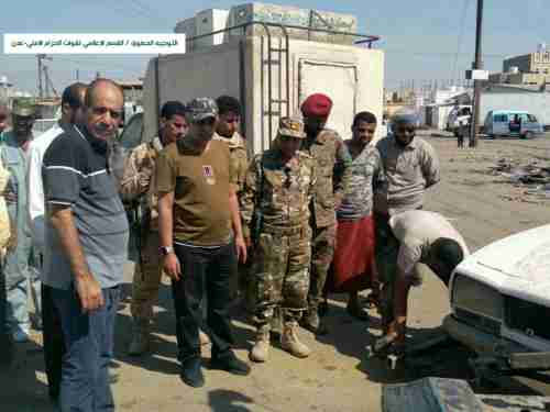 الحزام الامني يساند شرطة السير في حملة تنظيم الشوارع وازالة السيارات الخردة بمديرية البريقة