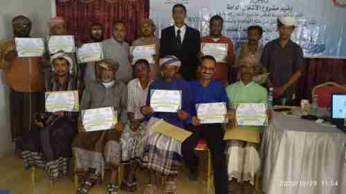 وكيل حضرموت للشئون الفنية يكرم المشاركون بالدورة التدريبية لمشغلي المشاريع في مجال إنتاج الكلور السائل من ملح الطعام بأستخدام أجهزة ATAW لمشروع الأشغال العامة بحضرموت
