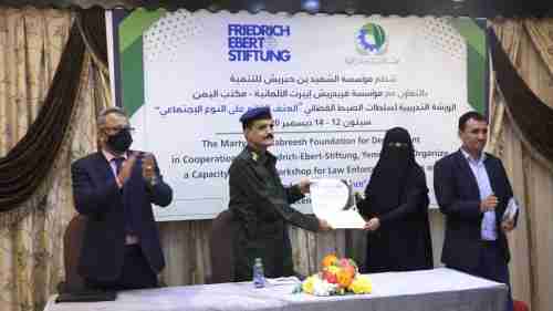 اختتمت بمدينة سيئون بمحافظة حضرموت اليوم، الدورة التدريبية الخاصة لسلطات الضبط القضائي في مجال العنف القائم على النوع الاجتماعي التي نظمتها مؤسسة فريدش ايبرت الألمانية بمكتب اليمن. وهدفت الدورة التي شارك فيها نحو (20) من رجال الأمن والضبط القضائي إلى اكسابهم مهارات ومعارف ومعلومات في مجال التعامل مع النزاعات والعنف الإجتماعي القائم على النوع الإجتماعي التي استمرت لثلاثة أيام متواصله إلى جانب حقوق المحتجزين في الصحة والتعليم والغذاء .. وأشاد نائب مدير عام الأمن لشؤون الوادي العقيد حسن مقشم بالادوار التي تقيمها منظمات المجتمع المدني والمؤسسات الدولية والمحلية لتأهيل وتدريب الكوادر الأمنية في سبيل مصلحة العمل وتطويره، مشدداً على المشاركين إلى ضرورة تطبيق ماتم أخذه من معلومات ونقلها للواقع العملي، ناقلاً في سياق حديثة تحايا وتبريكات مدير عام الأمن والشرطة بالوادي والصحراء العميد مبارك العوبثاني وتهانيه باختتام الدورة التدريبية لممارسة ماتم تعلمه بتأثير وممارسة أكبر.. في حين ثمن المدير التنفيذي لمؤسسة فيردشت ايبرت / محمود قياح تعاون السلطات الأمنية بالوادي والصحراء لتنفيذ البرامج والخطط للمنظمه الألمانية، مؤكداً إلى إختيار النخب الأمنية للمشاركة في الورش والبرامج للإسهام في نقل المعارف إلى زملاءهم الجنود والضباط ليكون الأثر اكبر، لافتاً إلى أن البرامج شمل عده محافظات في الجمهورية في مهارات التعامل مع النزاعات بناءاً على توصيات عقدت في عدن والمكلا عن واقع السجون وأماكن الاحتجاز وأهمية تطبيق نصوص القوانين اليمنية.. وجرى في ختام الدورة تكريم مدير أمن الوادي والصحراء لجهودة الكبيرة في تحسين اداء افراد الامن والشرطة بالاضافة الى المشاركين بشهادات مشاركة.