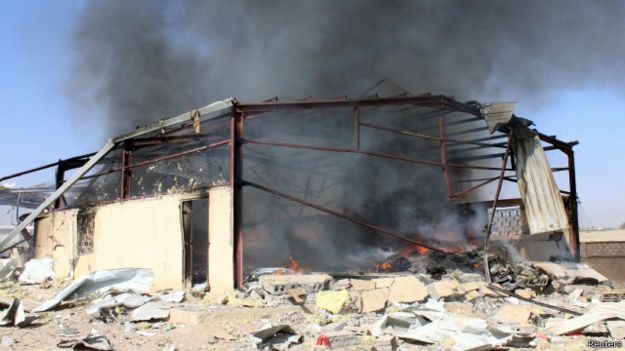 وأكد الحوثيون إن غارة جوية استهدفت المصنع فيما قال شهود عيان أخرون وموظف في مكتب المحافظة إن قذيفتي هاون سقطتا عليه.