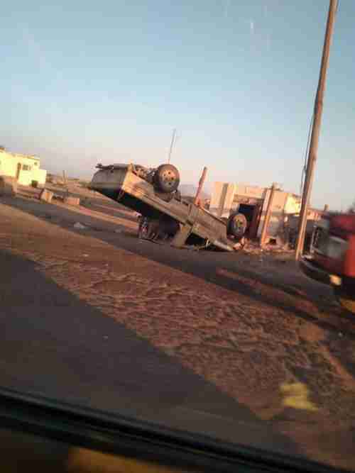 وانقلب الطقم العسكري الذي كان قادما من البريقة امام مقر التحالف العربي بعدن.