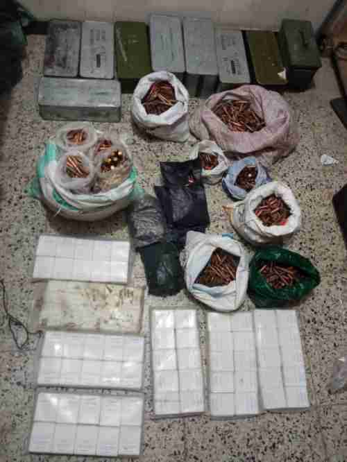 وعثرت على شحنة الذخائر مخبأة بإحكام بمركبة (نوع فوكسي) في طريقها إلى خارج العاصمة عدن، وضبطت المهرب، تمهيدًا للتحقيق معه.