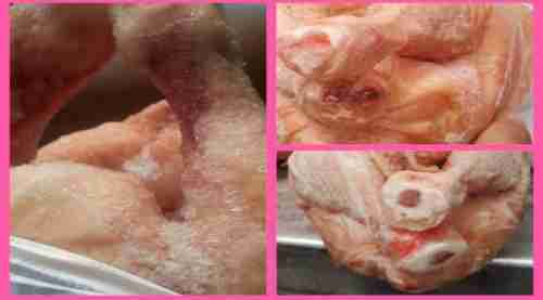 وعثرت لجنة التفتيش على شحنة دجاج فاسدة، لسوء ظروف التخزين والتبريد، مع حالات إدماء واضحة على العينات.