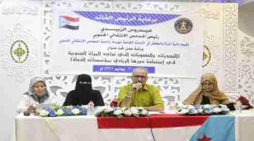 نظمت دائرة المرأة والطفل في الأمانة العامة لهيئة رئاسة المجلس الانتقالي الجنوبي، اليوم الأحد، ورشة عمل حملت عنوان "التحديات والصعوبات التي تواجه المرأة الجنوبية في استعادة دورها الريادي بمؤسسات الدولة".