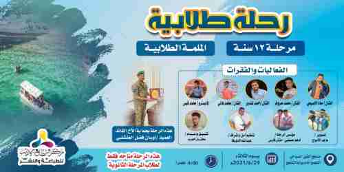 اقيمت عصر الثلاثاء الماضي الموافق 29/6/2021 رحلة ترفيهية طلابية الئ منتجع خليج الفيل السياحي والتي قد تم تجهيزها من قبل الشاب ادهم المصعبي والشاب منذر فارس وقد شهدت الرحلة المئات من شباب العاصمة الحبيبة عدن ومن مختلف المحافظات الأخرئ اجواء بهيجة شهدها طلاب الرحلة بعد تعب وعناء دام 12سنة الأ انهم خلصوا مرحلة الأساسي والثانوي ومتجهين الئ مرحلة الكلية الرحلة خصصت فقط لشباب الثانوية العامة حضر الرحلة الطلابية الفنان محمد معروف ابو وسام والفنان محمد هاني والمبدع ونجم العاصمة عدن الفنان معاذ الأصبحي والفنان الرائع احمد غنذور وعازف الأورج الشاب محمد قيس وفي تصريح هام من مؤسسي الرحلة شكرهم وتقديرهم للاخ القائد أوسان العنشلي والأخ الذي نظم الرحلة بالامن بااشراف الشاب عبد الله الدوبلة وفي الاخير شكر مؤسسي الرحلة كل من حضر هذة الرحلة الطلابية وكل من شارك وساهم في انجاح هذة الرحلة وشكرهم الخاص للاعلامين الذي حضروا وغطوا هذة الرحلة