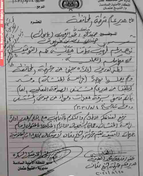 ودعت مدير عام المستشفى د.كفاية الجازعي شرطة الشيخ عثمان للتحقيق في واقعة للحوش الذي يحتوي على معدات ومستلزمات ومواد من بقايا هياكل حديد وغيرها تابعة لمستشفى عدن العام وضعت عهدة لدى مستشفى الصداقة.
