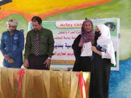 بحضور الاستاذة اشتياق محمد سعد رئيس دائرة المرأة والطفل بالأمانة العامة للمجلس الانتقالي الجنوبي والأستاذ انور محضار راجح مدير إدارة التربية والتعليم في مديرية الشيخ عثمان والاستاذ حسين يافعي رئيس قسم الانشطة المدرسية بالمديرية