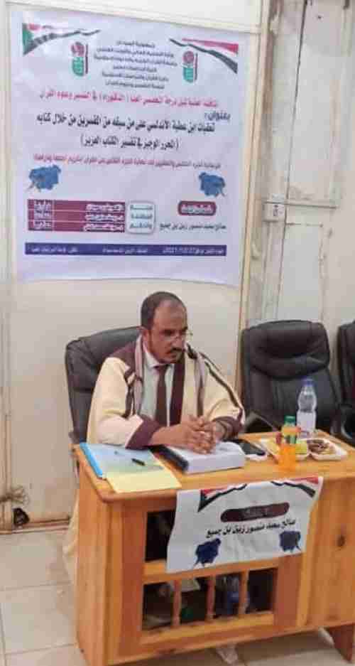 . نال الباحث المتفوق « صالح سعيد منصور زين بن جميع » من مديرية الروضة محافظة شبوة درجة الدكتوراة من جامعة القرآن الكريم والعلوم الإسلامية في جمهورية السودان بتقدير عام إمتياز ، في تخصص علوم القرآن .